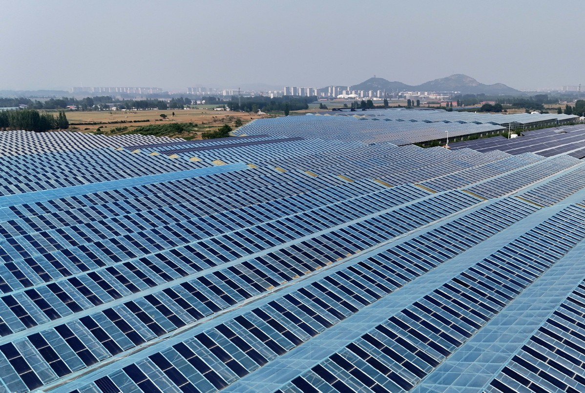 5月29日拍摄的秦皇岛市抚宁区坟坨镇20兆瓦“农光互补”光伏发电场(无人机照片)。(图片来源:新华社)