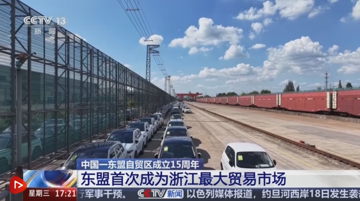 据杭州海关统计,今年前10个月,浙江省对东盟货物贸易进出口7106.1亿元,同比增长16.2%,东盟首次超越欧盟,跃升为浙江第一大贸易市场。